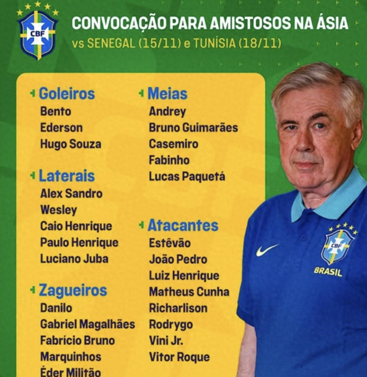 现在距离世界杯差不多只有半年时间了,留给各队的准备时间已不多,还有2次国际比赛日用来练兵,这次的11月份大名单接近巴西队最终的世界杯阵容。以安帅的人员选择来看,在锋线位置上,球员保持健康的话,维尼修斯、罗德里戈、库尼亚、拉菲尼亚、佩德罗以及埃斯特旺都能够入选。在巴西队的中场位置上,33岁的卡塞米罗深受安帅的重视,吉马良斯也是主力。此外,帕奎塔也是主要人选,切尔西的小将桑托斯则代表着巴西队的未来。